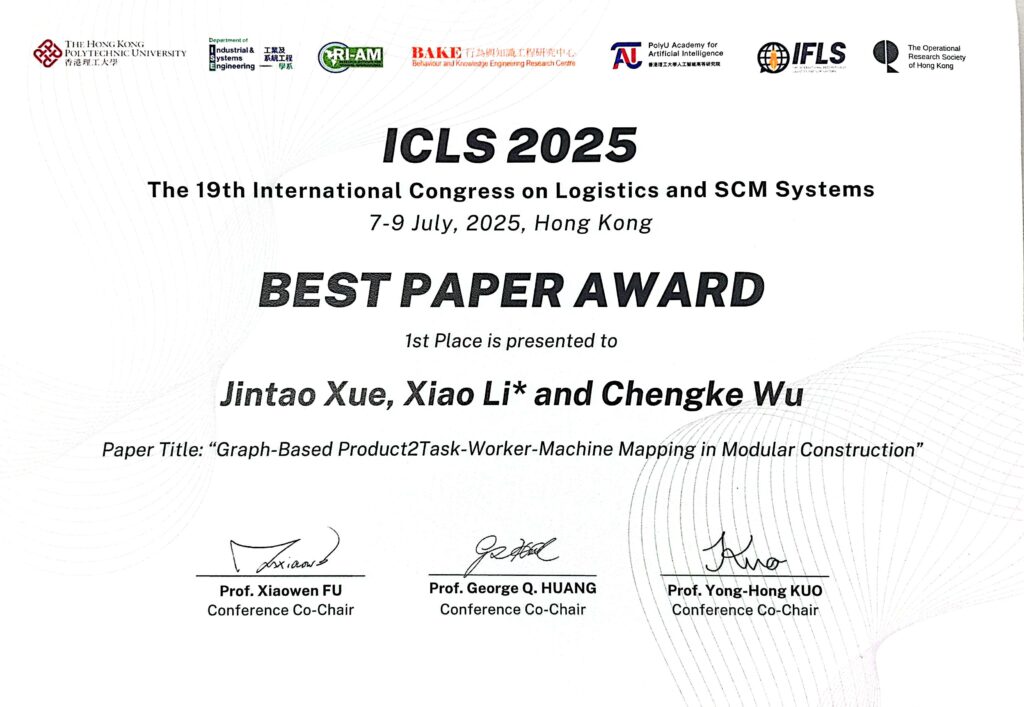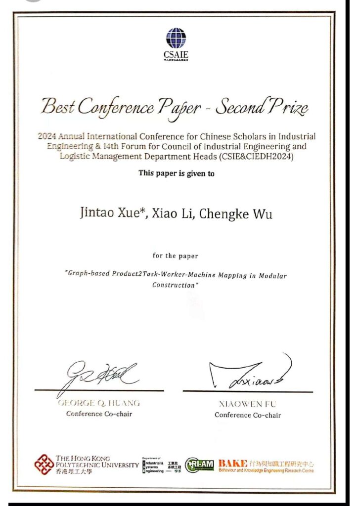 - Liu, Z. △, Li, X.*, Wu, C., Ma, J., Yang, Z., & Guo, Y. (2023). Automatic work package sizing for cost-effective modular construction. Automation in Construction, 154, 105003. https://doi.org/10.1016/j.autcon.2023.105003